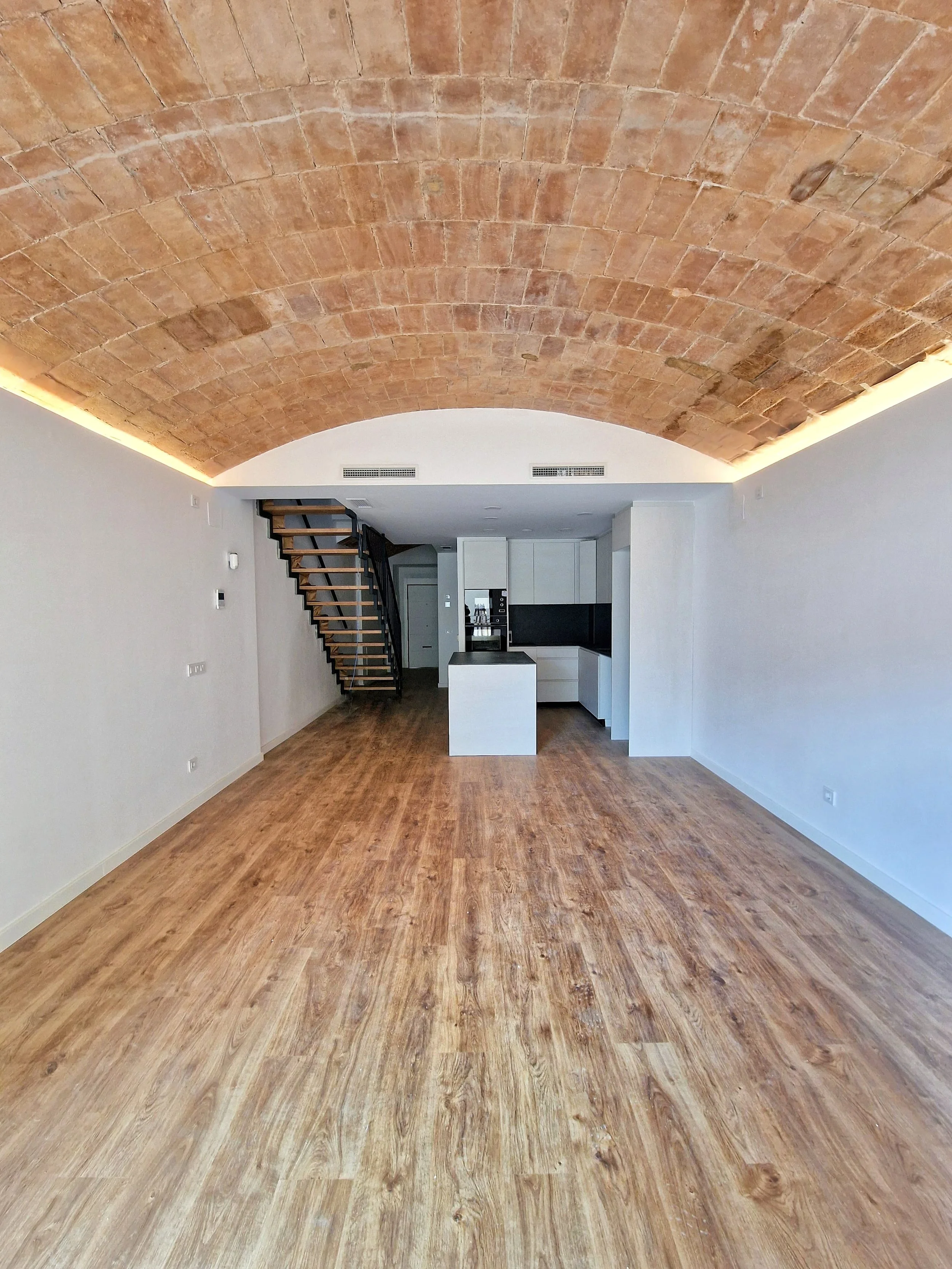Cambio de uso y reforma integral de un local para su conversión en vivienda, desarrollada en varias plantas. El proyecto se distingue por un patio lateral que inunda de luz natural las estancias y favorece la ventilación.